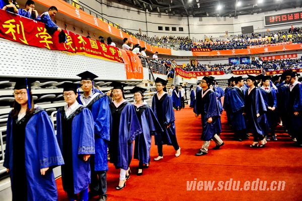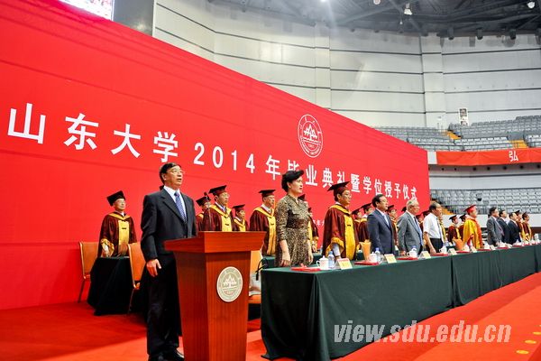 毕业典礼最后在《山东大学校歌》振奋欢快的旋律中落下帷幕。山东大学学位评定委员会全体成员、毕业生家长代表,学校教师代表,各学院院长、书记、各职能部门负责人;全体博士毕业生、硕士毕业生等约5400余人参加了毕业典礼。