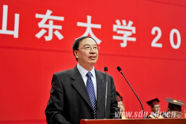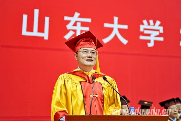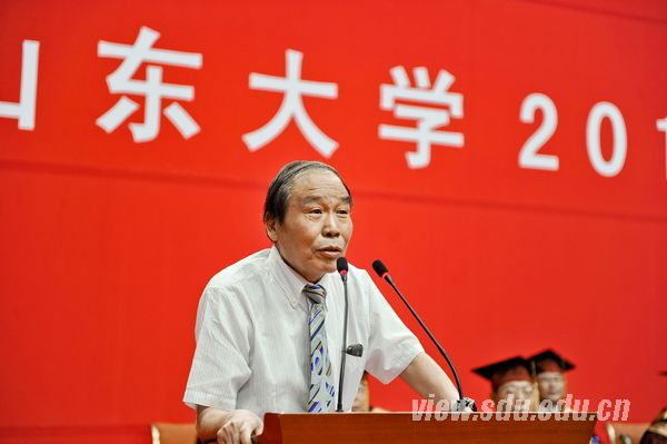 教师代表、儒学高等研究院杜泽逊教授代表全体研究生导师对同学们圆满完成学业表示热烈的祝贺。他对什么是老师、学生的任务以及师生关系向大家进行了深刻解读,并与大家分享了“得天下英才,切磋学问,共同进步”的“三乐”境界和“如泰山松柏,友谊万古长青”的美好心情。他希望各位同学毕业以后,用辉煌的业绩谱写自己的人生,为母校山东大学增光添彩。毕业研究生代表,医学院2014届博士毕业生张宁代表全体毕业研究生饱含深情地表达了对母校、对老师、对同窗的感恩之情,并代表全体毕业研究生庄严承诺:牢记学校对所有毕业生的殷切期望;牢记“为天下储人才,为国家图富强”的办学宗旨,传承“学无止境,气有浩然”的校训精神,做拥有智慧并富有激情的人,做德才兼备并勇于创新的人,做富有责任并勇挑重担的人。在未来的人生舞台上,尽情施展才华,书写成功与辉煌。