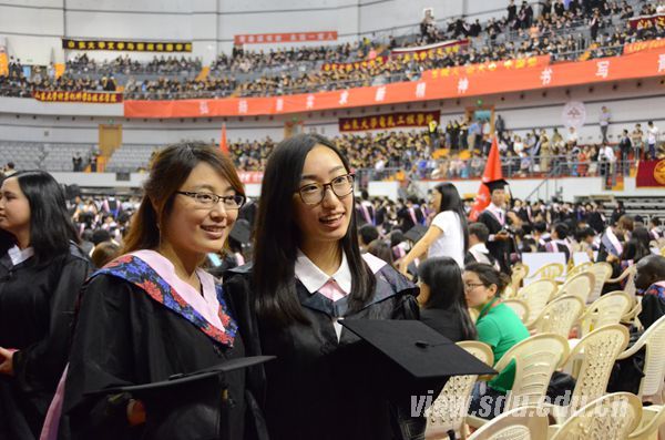 在学位授予仪式上,校学位评定委员会委员亲自为全校2014届毕业生一一颁发学位证书并握手、合影留念,与毕业生共同见证他们人生中这个庄严又欢乐的时刻。毕业生以30人一组依次走上主席台,从老师的手中接过烫金的学位证书,在老师温暖亲切的笑容中收获美好祝愿。两场典礼下来,颁授证书、握手、合影,校学位评定委员会委员在台上站立了六个多小时,只为表达对每一位毕业生的尊重、重视和祝福,衷心希望每一位毕业生留下这神圣时刻的美好回忆。激动与喜悦写在每一位毕业生的脸上,温馨与感动留在每一位毕业生心中,他们以深深的鞠躬,表达对老师的深刻感谢和对母校的无尽眷恋。