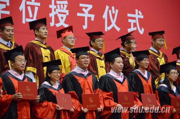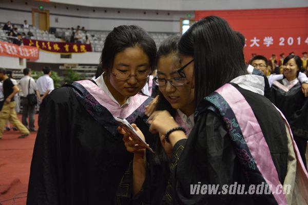 “儿女金榜题名时,家人欢笑团聚日”,不少学生家长也赶来毕业典礼见证这一时刻,法学院硕士毕业生严倩倩一家6口从山东临沂赶来,父亲严文德激动地说:“女儿保送到山大,我能明显感觉到她的进步和素质的提高,感谢山大对我孩子的培养,希望以后她在自己的行业尽自所能,步入新的台阶。” 两年前从山大硕士毕业的王绘凝是物理学院博士毕业生褚洵的未婚妻,她说未婚夫博士阶段忙科研特别辛苦,如今“守得云开见月明”,希望他以后秉承山大优良作风,事业有成。控制学院的本科毕业生丁一嵩的爸爸妈妈、姥姥奶奶全家都从北京赶来参加典礼,两位老人都年近八十、精神抖擞,姥姥自豪地说:“他学习刻苦,拿了两个学位证书,毕业决定出国深造,我们也都觉得他该继续学习,学好了回来报效祖国。”