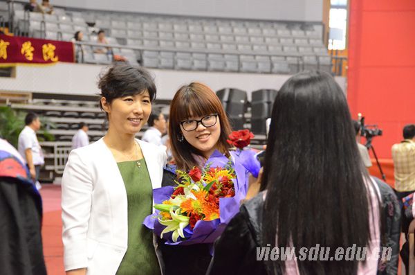 采访物理学院党委副书记吴天柱时,他的学生正在主席台上领取证书,他感到充满了成就感,“我希望学生们得到自己想得到的。无论他们在哪里,山大永远在这,物理学院总是在这,欢迎他们回来。”材料学院党委副书记张强动情地说道:“让我感触最大的是我们的研究生从3年前的迷茫到如今的自信,他们的成长和进步是我最欣慰的。”外语学院党委副书记、12级辅导员高弟说,“看到视频里的点点滴滴,大学生活历历在目,山大为学生提供了一个实现梦想的平台,山大人走出母校得到社会各界的广泛认可,我们会本能地有一种对母校的热爱。”医学院11级辅导员孙钰说:“看到毕业生代表为后勤工作人员献花时,我感觉到我们山大的学生更懂得感恩了,同时我要提醒自己的学生珍惜在大学的美好时光。”管理学院辅导员孙艳洁老师也表达了自己此时的感受:“现在心情有些沉重和伤感,相处3年,我更多地扮演知心大姐姐的角色,和同学们之间建立了深厚的友谊。如今他们毕业了,这也是对他们历经困难获得成功的肯定。”能动学院10级的辅导员杜婷婷、管理学院10级辅导员徐辉都对毕业典礼感觉既高兴又激动,相信同学们四年在山大的成长会为他们未来的事业提供坚实的基础,也希望他们创造更好的未来。信息学院10级辅导员李飞动情地说:“这是我带的第一届毕业生,感觉感情特别深厚特别不舍。之前在为全院的学士帽赶工做流苏的时候,感觉自己很幸福,希望大家常常回母校看看。”