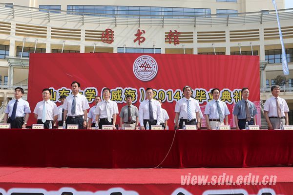 在《山东大学校歌》振奋欢快的旋律中,毕业典礼落下帷幕。威海校区全体校领导,校学位委员会成员,各院(部)主要负责人,职能部门负责人,教师代表,校友代表和2014届全体毕业生参加了毕业典礼。