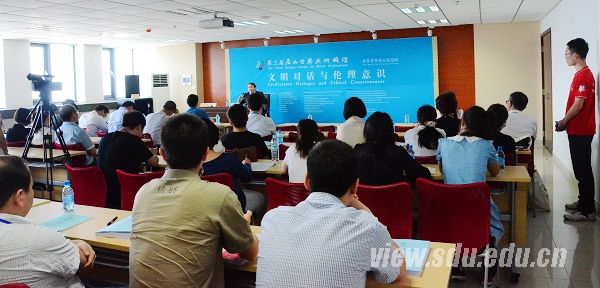 克里斯托弗·贝斯在主题演讲中表示,在旧文明秩序中,话语权掌握在少数国家手中,随着新文明秩序的建立,文化多样性越来越得到认可。他阐述了年轻人在世界文明对话中应该扮演怎样的角色及其如何更好地发挥作用,鼓励青年人要勇于担当,广泛参与。陈炎在致辞中说,来自不同文化背景的年轻人共聚一堂,探讨不同文明视域下的伦理根源,可以增进对彼此文化背景下不同信仰、不同伦理的理解,从而为不同文明之间的和谐共处找到思想纽带。他鼓励来自五湖四海的青年博士和年轻学者充分展现自己的学识与风貌,聆听和吸纳不同的意见,为构建和谐世界作出贡献。