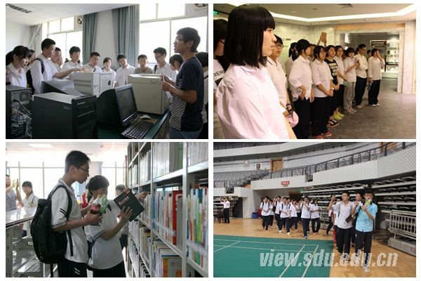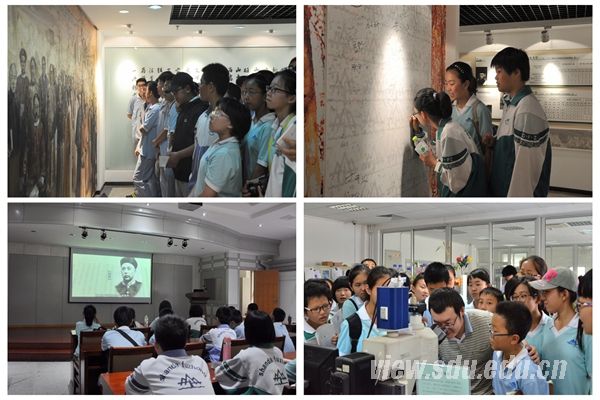活动中,中学生分别参观了校史馆、博物馆、图书馆、体育馆、大成广场等校园场馆和晶体所、生命学院、化学院实验室以及医学基础和解剖实验室等。在校史馆,讲解员向中学生展示珍贵的文物资料和历史照片,细致讲解山东大学百余年的历史和辉煌成就;博物馆向中学生展出了数量庞大且具有极高历史价值的藏品,通过“文明之光”、“东方重镇”、“邿国寻踪”、“春华秋实”四部分展览,同学们领略了山东大学考古学、历史学等人文社科类学科的非凡成绩。在生命学院、化学楼和晶体所重点实验室的展览中,中学生近距离接触并体验了较先进的仪器设备。随行采访中,记者了解到来自枣庄三中的理科班同学对化学、生物饶有兴趣也有所见解,“生物化学是我今后想要深造的方向,希望我能在高考中好好发挥考入山大,享受这里良好的学术和实践氛围。”