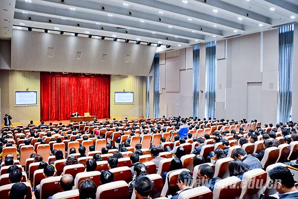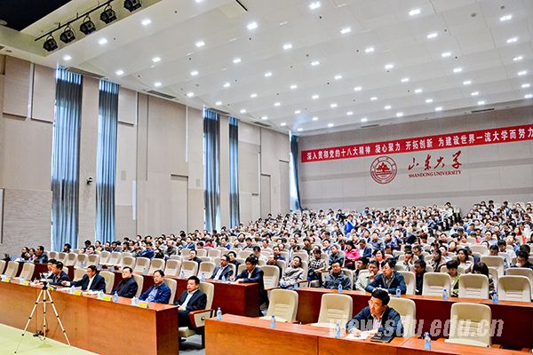 校党委常务副书记李建军,副校长张永兵、陈炎,总会计师曹升元出席报告会。全校副处级以上领导干部400余人听取报告,山东大学(威海)设视频分会场。