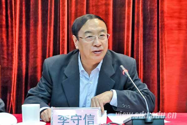 李守信在讲话中说,举办辅导员高级研修班,对于深入实施教育中长期发展规划纲要,坚持立德树人根本任务,落实教育部普通高等学校辅导员培训规划,加强高校辅导员骨干队伍建设,具有十分重要的意义。教育部印发了《高等学校辅导员职业能力标准(暂行)》,举办这次辅导员高级研修班,主要目的就是按照这一标准要求,帮助辅导员骨干进一步开阔视野、更新理念、拓宽思路,掌握科学的思维方式和工作方法,为做好本职工作提供有力支撑。李守信希望全体学员珍惜机会,带着问题学习、带着问题思考,加强交流、互相启发、共同提高,力争学有所获、学有所成,将研修学习的效果转化为实实在在的工作成果,发挥引导作用,带动整个辅导员队伍整体学术素养和工作水平的提高。