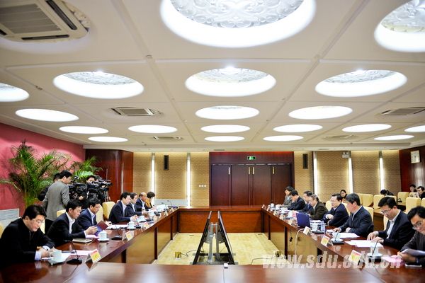 [本站讯]3月14日,山东省委常委、青岛市委书记李群来山东大学调研工作,在中心校区听取了关于山东大学青岛校区建设情况汇报并讲话。山东大学党委书记李守信主持汇报会,校长张荣作情况介绍。校党委常务副书记李建军,常务副校长、青岛校区建设指挥部总指挥王琪珑参加活动。