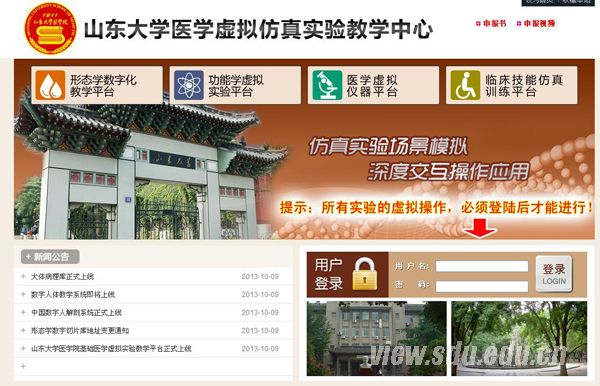 山东大学医学虚拟仿真实验教学中心网址: