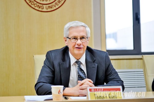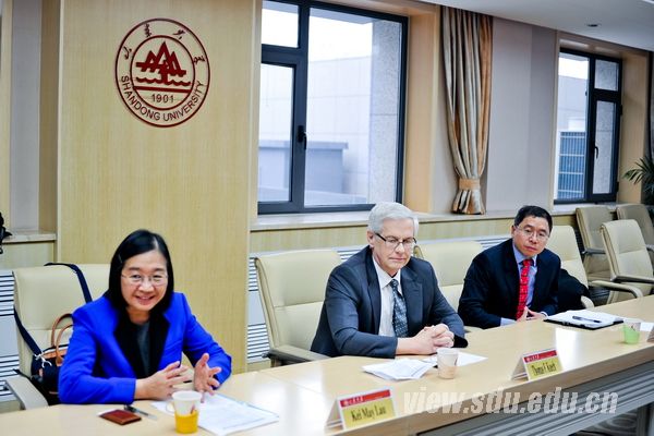 Keuch教授结合威斯康星大学的实践经验和世界高等教育发展趋势,从学生培养、科研合作、科技成果转化、社会服务等方面为山大提出了建议。会谈中,王琪珑介绍了青岛校区规划建设情况。