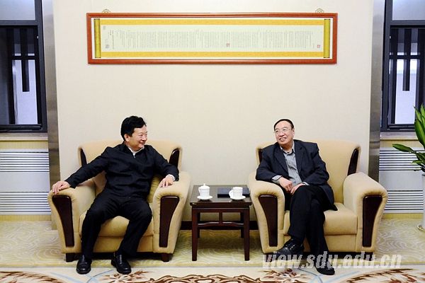 [本站讯]1月16日,山东大学党委书记李守信在中心校区明德楼会见即墨市市长郑德雁一行,洽谈推进青岛校区建设事宜。山东大学总会计师曹升元参加会见。