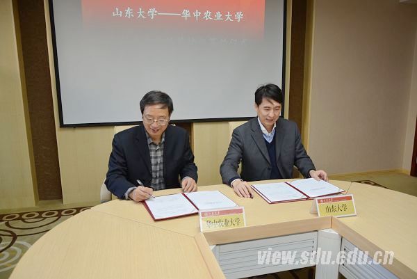 [本站讯]12月27日上午,山东大学与华中农业大学本科生合作培养协议签约仪式举行。山东大学副校长陈炎、华中农业大学副校长李崇光出席仪式并讲话。