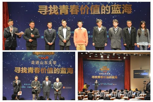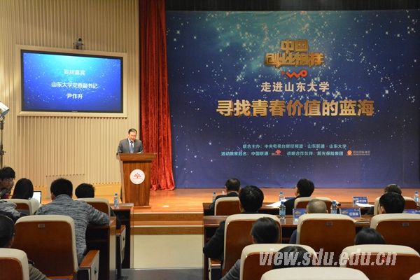 [本站讯]12月15日,“寻找青春价值的蓝海——‘中国创业榜样’走进山东大学”活动在中心校区举行。山东大学党委副书记尹作升,中央电视台财经频道“中国创业榜样”制片人、总导演李明,中国联通山东省分公司副总经理韩冰出席活动并致辞。