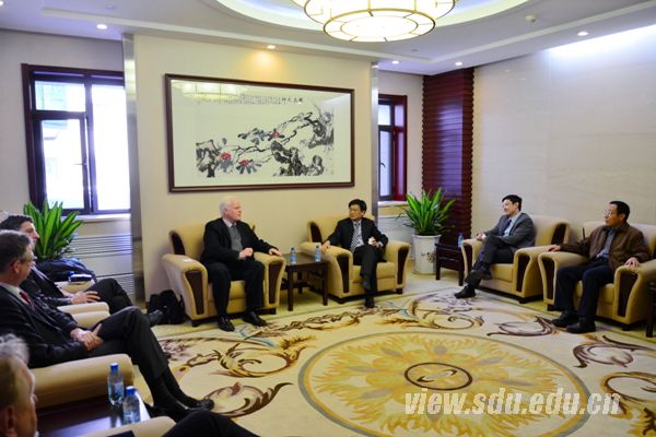 [本站讯]12月4日,法国昂热大学主管外事副校长John Webb教授一行四人来山东大学访问。副校长娄红祥会见了来访代表团一行。
