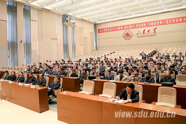[本站讯]11月20日上午,山东大学在知新楼A座三层报告厅召开全校各单位主要负责人会议,传达学习贯彻党的十八届三中全会精神。