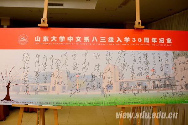80余位校友一一上台发言,向学院和老师汇报三十年来的生活和工作状况,并向恩师表达深深的感激与祝福。他们纷纷表示,无论何时何地,都不会忘记自己是山大中文系的学生,不会忘记母校给予自己的一切,并表示今后会加深与学院的联系。