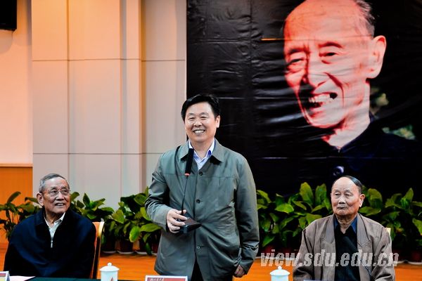 臧乐源代表臧克家先生的子女发表了热情洋溢的讲话,介绍了臧克家先生的生前遗愿,并深情讲述了臧克家先生一家四代和山东大学的不解情缘和炽热情怀。