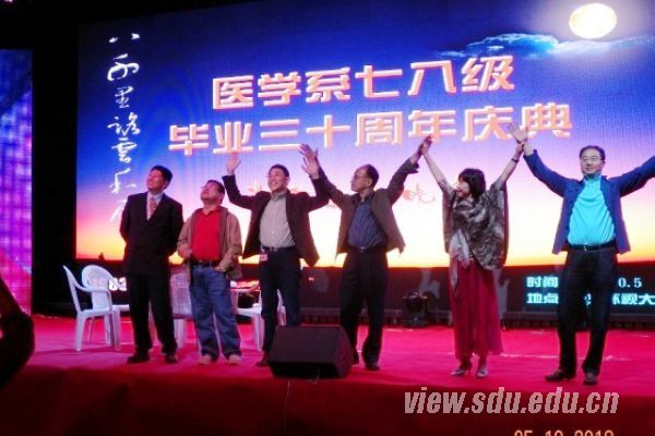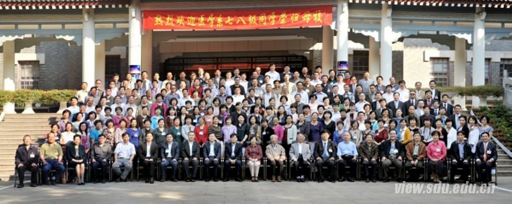 [本站讯]近日,山东大学医学院78级校友毕业三十周年返校庆典活动在趵突泉校区举行。山东大学副校长娄红祥出席庆典活动。 娄红祥对医学院78级校友回访母校表示欢迎,对校友们多年来给予母校的关注和支持表示感谢。他向校友们介绍了合校以来山东大学发生的巨大变化,以及创建世界一流大学的办学目标。他希望校友们今后一如既往地关注和支持母校的发展。全国著名血液病专家张茂宏教授代表任课教师讲话。他深情回忆了文革后全国首批统考入校的78级大学生刻苦学习、自强不息、勇攀医学高峰的动人情景,并表示78级同学治学严谨的学习风气为以后学子树立了楷模。医学院党委书记陈鑫介绍了学院在人才培养、学科建设、师资队伍等方面的发展,对校友们长期以来对学院的发展和支持表示感谢。 医学院78级6个班的代表纷纷从不同侧面表达了对母校和老师培养的感谢,深情回忆了当年的如歌岁月以及同学间的深情厚意。庆典大会还播放了78级同学创意制作的长达35分钟的《致青春》视频,系统回顾了大学时代的青葱岁月,表达了大家毕业三十年来对青春的感悟和怀恋,引起了与会校友的强烈共鸣。 会后,医学院78级校友还举行了庆祝毕业三十周年篝火晚会。 当年的任课教师代表、辅导员代表和来自海内外近200名医学院78级校友参加了庆典活动。
