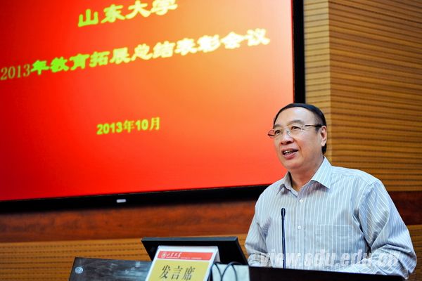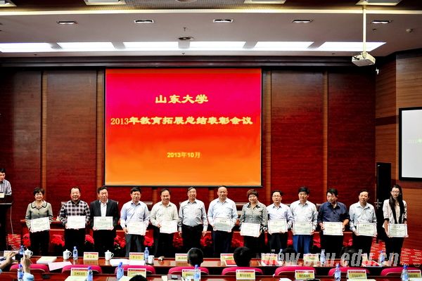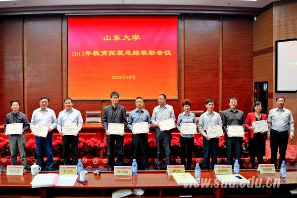 [本站讯]10月10日,山东大学2013年教育拓展工作总结表彰会议在中心校区举行。山东大学党委书记李守信出席会议致辞并为获奖者颁奖,副校长陈炎主持会议。