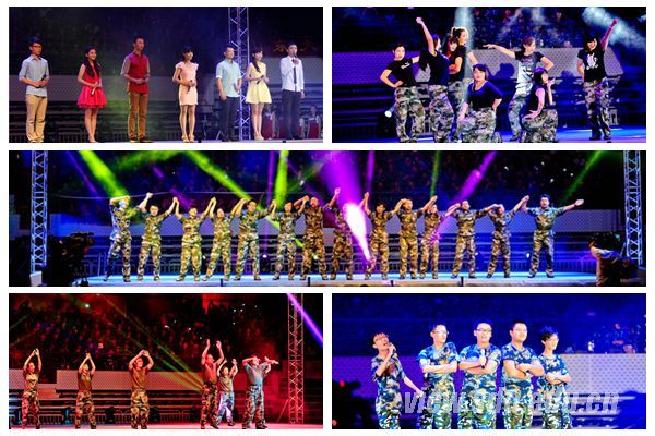 山大老生和新生共同主持晚会(左上图),新生辅导员和新生开场表演