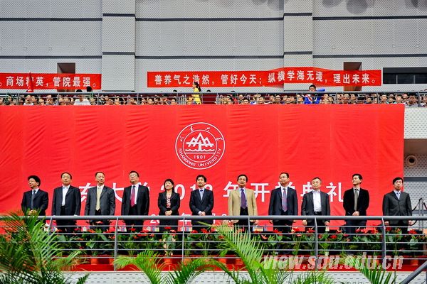 [本站讯]九月的济南已褪去暑热,古老而常新的山东大学又迎来了一万六千余名新生。9月26日下午,山东大学2013级新生开学典礼在中心校区山东大学体育馆隆重举行。山东大学党委书记李守信、校长徐显明出席开学典礼;中央纪委驻国家安监总局纪检组长、总局党组成员赵惠令校友出席典礼并致辞;中国工程院院士张运教授,中国科学院院士佟振合教授,山东大学文科一级教授温儒敏教授、安体富教授,校党委常务副书记李建军、党委副书记尹作升、副校长陈子江、校领导方宏建等出席典礼。