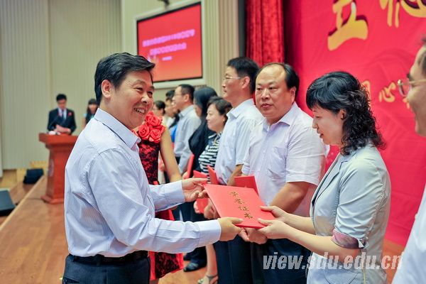 山东大学党委书记李守信、校长徐显明出席大会并为获表彰的教师颁奖。
