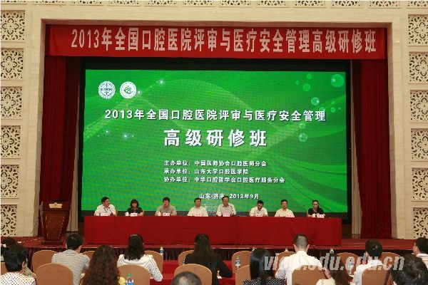 [本站讯]9月15日,由中国医师协会口腔医师分会主办,山东大学口腔医学院承办,中华口腔医学会医疗服务分会协办的全国口腔医院评审与医疗安全管理高级研修班在济南开幕。国家卫生和计划生育委员会医政医管局副局长周军、山东省卫生厅副厅长李仲军、中国医师协会口腔医师分会会长俞光岩出席开幕式并讲话,山东大学副校长陈子江出席有关活动。