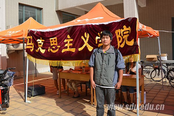 为什么选山东大学?因为山东大学好呗!我家在湖北,坐了十二个小时的火车,就是想早点来学校。到学校一看,和自己想的一样,所以就放心了。我的专业是思想政治,我想好好读书,希望再读博士。