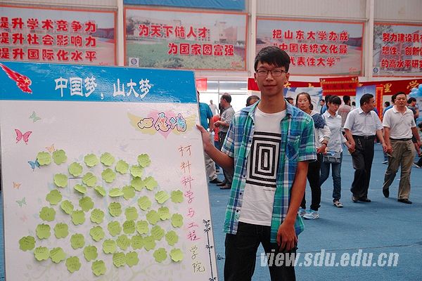 我是山东人,山东大学是我的不二选择。我喜欢山大的性格,厚重、朴实、内敛。来到山大,我会好好学习,多认识一些朋友。如果有机会,我还希望自己可以到其他学校交流,丰富自己的经历,拓宽自己的眼界。