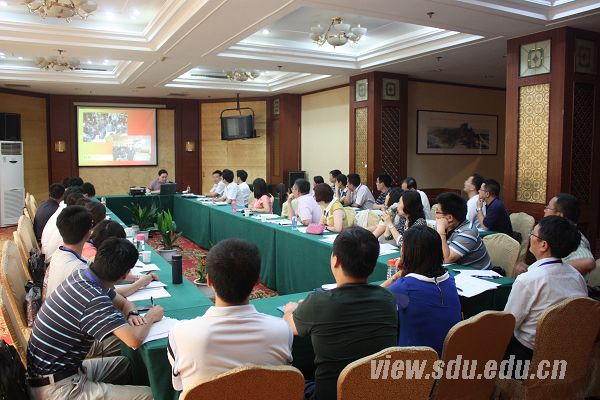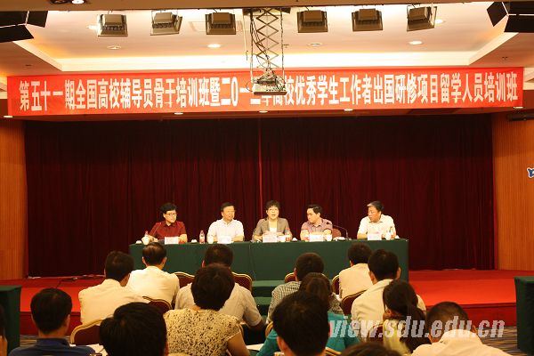 全国高校辅导员工作研究会秘书处办公室主任、教育部高校辅导员培训和研修基地(山东大学)办公室主任夏晓虹主持开班仪式,来自全国各地的2013年高校优秀学生工作者出国研修项目留学人员参加培训。本次培训为教育部2013年度全国高校辅导员示范培训招标项目,既是一次全国高校辅导员骨干培训班,也是赴英国、美国高校进行学习交流人员的行前专题培训班。培训旨在帮助学员进一步明确大学生思想政治教育工作的新形势、新任务、新要求,深刻认识赴国外高校研修的重要意义、主要任务和学习目标,增强学习积极性、主动性;同时帮助他们掌握英美国家的政治经济文化发展概况和研修项目的基本情况,加深彼此了解,为在国外的学习、生活做好准备。今年是教育部高校辅导员培训和研修基地(山东大学)第三次承办高校优秀学生工作者出国研修项目留学人员培训班。