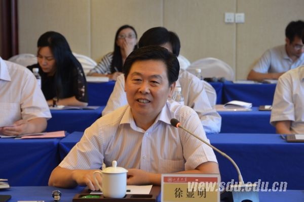 徐显明在讲话中回顾了山东大学的办学历史,介绍了学校的学科优势,以及“统分结合、各具特色、优势互补、一体发展”的大学系统建设方针。他表示,山东大学“跨越历史的栈桥”,恢复在青岛办学,将按照高端性、国际性、特色性、标志性和绿色性的原则,推进校区建设。徐显明对专家们提出的建议给予高度评价,指出本次会议拉开了青岛校区学科建设发展的帷幕,必将在山东大学发展史上产生深远影响。