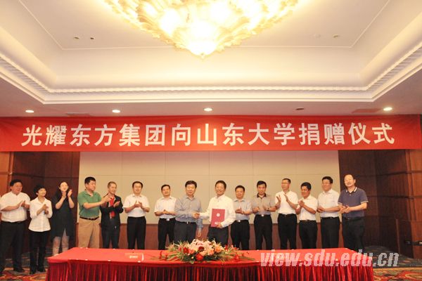 [本站讯]近日,光耀东方集团向山东大学捐赠仪式在北京市光耀东方大厦举行。山东大学校长徐显明,山东大学校董、光耀东方集团董事长李贵斌出席捐赠仪式并致辞。