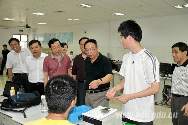 在工程训练中心,李守信先后参观了中心的各个工程训练场地,观看了学生创新实践活动现场,与暑期学校参训师生进行了亲切交流,对他们表示慰问。李守信叮嘱同学们要好好锻炼技能,提高实践动手能力,积极参与科研,不断加强自主创新能力。李守信希望工程训练中心将工厂实际生产与创新环节充分融入实训课程体系,注重多学科融合,不断提高工训中心的利用率,让全校所有专业的学生都可以参与培训,充分利用好这一难得的校内实践教育平台。