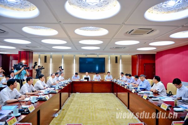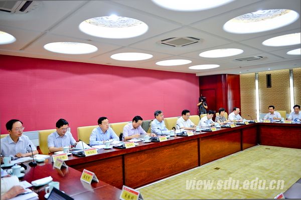 徐显明出席会议并介绍了山东大学的发展历史和学校现状,他说,近年来学校在学科建设、科学研究、人才队伍建设等方面都取得了较大的成绩。他希望山东省委省政府在山东大学创建世界一流大学、建设大学系统、第四期省部共建、打造世界金融数学中心等方面对学校予以更大支持。徐显明还就山东高等教育改革发展工作谈了自己的三点思考:一是要加强顶层设计,基础教育、职业教育、高等教育和研究生教育培养的人才各有侧重;二是要着力加强师资队伍和管理队伍的建设;三是省里要对高校的建设和发展提供有力的政策支持。