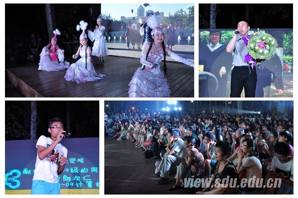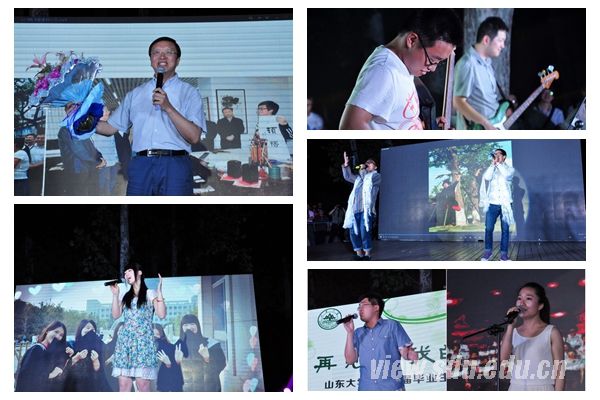 [本站讯]6月19日晚,“再见了,我的小树林”2013届毕业生告别母校青春歌会在中心校区小树林举行。来自各个学院的2013届毕业生相聚小树林,以精湛的文艺表演抒发对母校的不舍,放飞对未来的希望。校党委副书记方宏建出席歌会。 晚会现场,配合着清新活力的舞台、座无虚席的观众、烘托气氛的视频,毕业生以歌曲、舞蹈、诗朗诵等多种形式,唱响毕业骊歌,告别稚嫩,致敬过往,怀揣梦想,憧憬未来,展现对同学的不舍、对老师的感激、对母校的留恋。率先出场的文学院“赤子乐队”以青春飞扬的《恋曲1980》、《私奔》和《那只蝴蝶飞》歌曲联唱点燃了现场气氛。哈萨克族毕业生布丽布丽等身穿民族服装以一曲《青春之歌》演绎了少数民族的异域风情。舜歌合唱团毕业生代表何辛热泪盈眶地演唱了自己谱写的歌曲《一舜一生》,表达了对舜歌依依不舍的眷恋。在悠扬的背景音乐中,第十五届研究生支教团献上原创诗歌朗诵《山大情,支教梦》,用诗意的语言再现了支教途中队友的温馨和感动,用无言的奉献、无悔的付出感染了现场观众。艺术学院许悦和医学院扬帆深情对唱《想把我唱给你听》,展现出的甜蜜爱情让现场观众沉醉其中。此外,艺术学院周超演唱的《我的骄傲》、肖鹭丹演唱的《美丽》以及经济学院研究生秦川演唱的《你是我的眼》都一次次将晚会推向高潮。 方宏建演唱了两首歌曲—《期待重逢那一天——送别毕业生之歌》和《朋友,干杯》,表达了对毕业学子的惜别之情、祝愿之心及重逢之待。法学院辅导员尹上用一曲《初爱》鼓励毕业生无畏失败,相信未来,勇敢去爱。 学工部、研工部、公安处、就业发展中心、校团委等有关部门负责人,各学院2013届毕业生辅导员参加歌会。