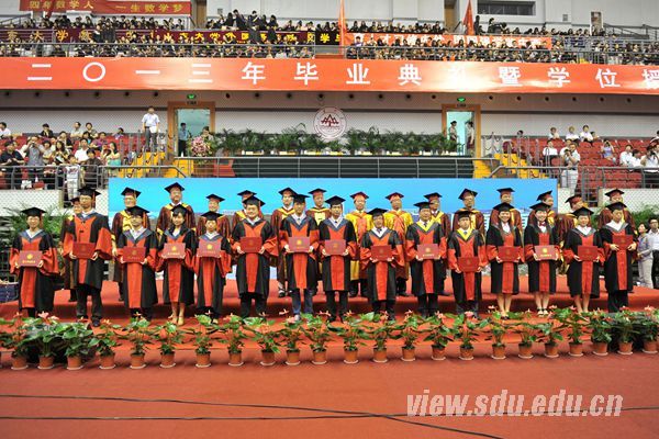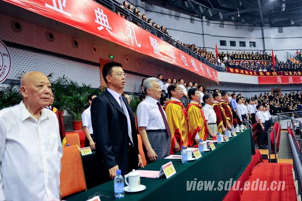 山东大学著名专家学者、优秀教师代表、杰出校友代表、各学院主要负责人、学校职能部门负责人、中学校长代表、毕业生家长代表和新闻媒体的代表们与6400余名2013届博士、硕士、本科以及留学生代表一同参加了热烈庄重的毕业典礼。