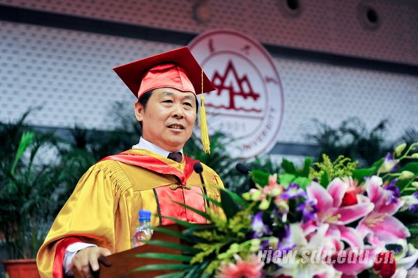 校友代表、中国科学院生态环境研究中心主任、中国科学院院士、山东大学环境科学与工程学院名誉院长江桂斌教授在发言中回顾了自己求学山大的难忘经历,感谢母校赋予了他坚韧不拔的品质、朴实耿直的性格、攀登科学高峰的勇气。他勉励同学们树立正确的人生观,进行正确的人生设计;有积极的人生态度,准备应对复杂的环境和艰苦的人生;勤奋努力,永不停步,具备崇高的社会责任感和健康的体魄,继承和发扬山大人的优良品质,并祝愿山大仰泰山之高,临大海之气,承儒家之道,开大学新风。校董代表、银丰集团董事长王伟代表校董事会全体成员向老师和家长表示感谢,向圆满完成学业的各位学弟学妹们表示祝贺。他与大家分享了自己30年的人生经历并寄语同学们:认真做事、贵在坚持;诚信做人;张弛有度、开拓进取。他希望各位校友在今后的人生道路上创造更大的业绩,演绎更多的辉煌,回馈母校,报答母校。