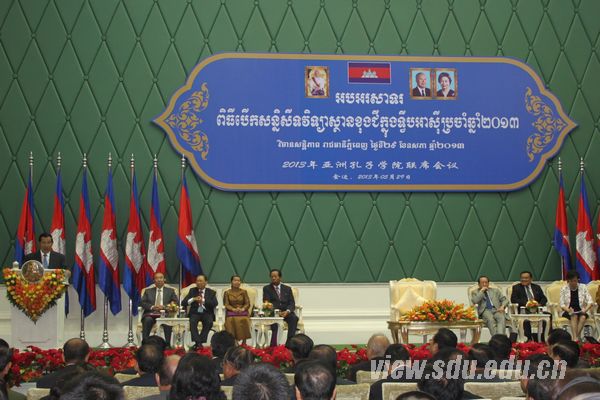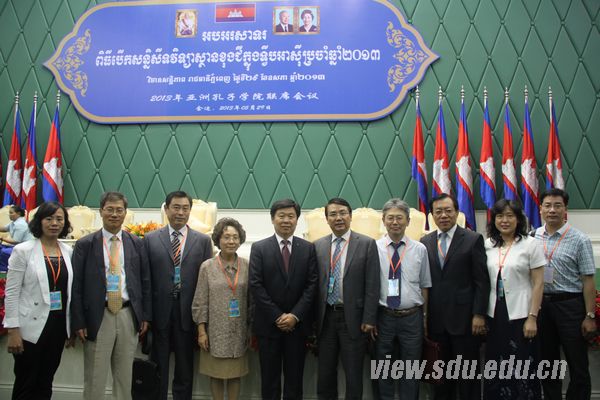 [本站讯]近日,山东大学校长徐显明率代表团参加了在柬埔寨金边召开的2013年亚洲地区孔子学院联席会议。柬埔寨首相洪森,中国国务院参事、国家汉办主任、孔子学院总部总干事许琳出席开幕式并致辞;中国驻柬大使潘广学出席开幕式。