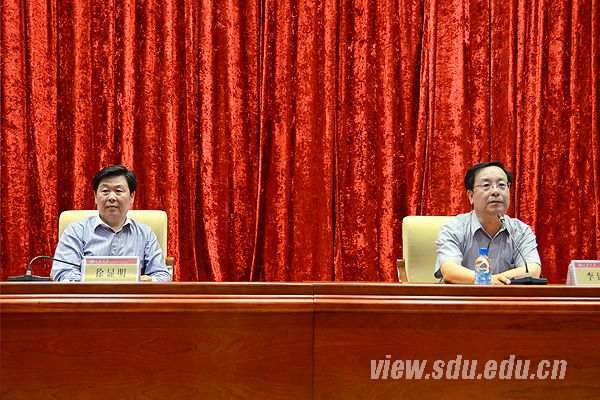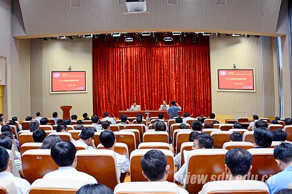 [本站讯]6月8日下午,山东大学处级领导干部学习贯彻党的十八大精神培训班第七场专题报告会在中心校区知新楼A座三层报告厅举行,校长徐显明教授作关于“党的十八大报告与法治中国”的专题报告。校党委常务副书记李建军主持报告会。