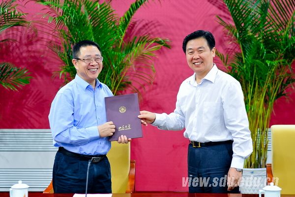 [本站讯]5月14日,中国科学院数学与系统科学研究院程代展教授受聘山东大学特聘教授。山东大学校长徐显明出席聘任仪式,向程代展教授颁发聘书并致辞。