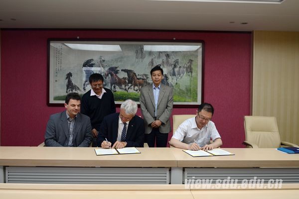 [本站讯]5月17日,德国亥姆霍兹国家研究中心联合会(Helmholtz-Gemeinschaft Deutscher Forschungszentren)旗下的感染病研究中心(HZI)主任Dirk Heinz 教授和药物研究所(HIPS)所长访问山东大学。副校长张永兵会见来访客人,并签署成立“山东大学-亥姆霍兹联合生物技术研究所”(Shandong University– Helmholtz Joint Institute of Biotechnology)合作意向书。 会见中,张永兵对Dirk Heinz一行的来访表示欢迎,并简要介绍了学校的历史、现状、优势学科和国际交流合作等情况。他表示,双方合作建设的山东大学-亥姆霍兹联合生物技术研究所将是一个高水平国际科研合作平台,通过双方强强合作,必将产生更多杰出的科研成果,培养出更多优秀的年轻学者。同时学校将会给予大力的支持。Dirk Heinz教授详细介绍了亥姆霍兹国家研究中心的架构与科研内容。他表示,非常高兴来到山东大学,中国教育和科学研究近十几年的快速发展给他留下了非常深刻的印象。联合生物技术研究所的成立,将为亥姆霍兹联合会推动中德科学家合作搭建一个桥梁。同时,他希望以这个平台为核心,将合作延伸到与生物技术和健康研究相关的领域。 国际事务部相关负责人一同出席会见及签字仪式。 会谈结束后,双方签署了成立“山东大学-亥姆霍兹联合生物技术研究所”合作意向书。根据意向书,双方将开展中德合作研究,并成立联合研究所(山东大学-亥姆霍兹联合生物技术研究所), 开展利用微生物技术发现新药的研究。中方负责单位是山东大学微生物技术国家重点实验室,德方的负责单位是亥姆霍兹感染研究中心(HZI)和药物科学研究所(HIPS)。 德国亥姆霍兹国家研究中心联合会是德国最大的科研团体。联合会下属有18个国际著名的研究中心,员工总数达到31,745名。联合会在国际学术界代表着德国的国家科技研究形象,主要特征是围绕大型科研设备展开国际一流的科学研究,从事能源(Energy)、土壤与环境(Earth & Environment)、健康(Health)、航天(Aeronautics)、关键技术(Key Technologies)、结构(Structure of Matter)等方面的研究。
