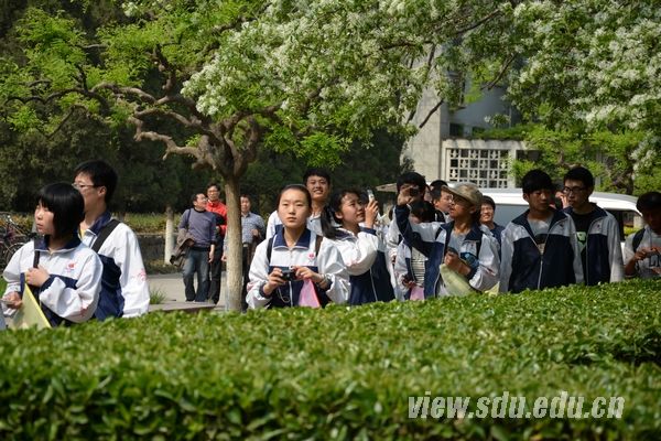 [本站讯]4月27日,以“感悟名校,放飞梦想”为主题的山东大学2013年春季中学生校园开放月活动启动,微山一中、阳信二中的100多名师生通过自愿申报的方式参加了活动。