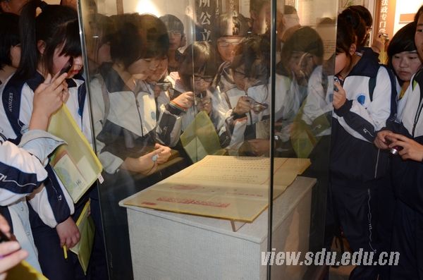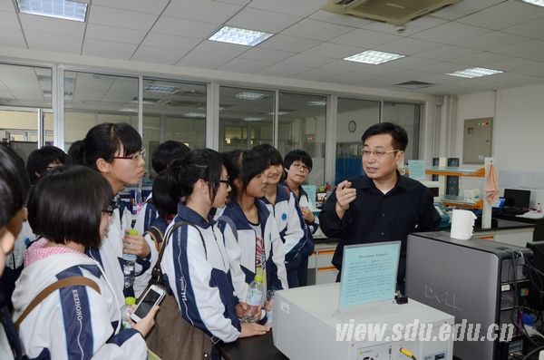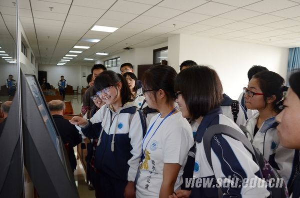 活动中,中学生们分别参观了山大校史馆、博物馆、图书馆、体育馆、生命学院、化学院、晶体所、大成广场、稷下广场、综合服务楼等地。在校史馆,讲解员向中学生展示珍贵的文物资料和历史照片,细致讲解山东大学百余年的历史和辉煌成就。当讲解员讲解到闻一多、臧克家等一批批山大历史上的文学大家时,中学生们发出赞叹钦佩之声。在博物馆,通过“文明之光”、“东方重镇”、“邿国寻踪”、“春华秋实”四部分的展览,同学们深刻领悟到了山东大学考古学科的非凡成绩,连声赞叹山大考古人的专业水准和孜孜不倦的探索精神。中学生们还在志愿者的带领下走进了“科技”的世界——生命学院、化学楼和晶体所的重点实验室,体验了高科技以及化学实验的魅力。