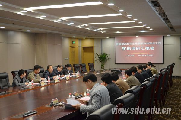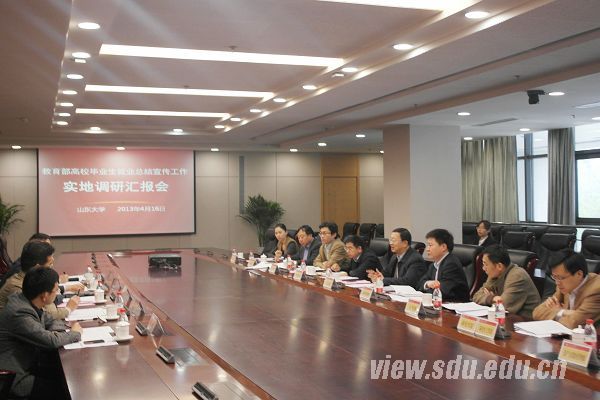 [本站讯]4月16日,教育部2012-2013年度高校毕业生就业总结宣传工作专家组一行5人到山东大学调研。专家组组长、全国高等学校学生信息咨询与就业指导中心主任张凤有,山东大学党委副书记方宏建出席工作汇报会及情况反馈会。 汇报会上,张凤有介绍了全国高校毕业生就业总结宣传工作的开展情况,以及此次调研的目的、主要内容和基本程序。方宏建介绍了山东大学的办学历史和发展现状,汇报了山东大学的就业工作情况和基本举措。会后,专家组召开座谈会,了解山大师生对学校就业和相关工作的意见和评价,走访相关单位查阅文件资料,考察设施,核查了山大人才培养、就业工作场地经费使用、学生就业服务平台建设情况等,重点调研了山大就业工作“四化”、“四到位”的落实情况等。 调研情况反馈会上,张凤有代表专家组对调研情况进行了评价反馈。专家组对山东大学就业信息服务体系、1+3+X的就业指导体系、“七向四维立体化”的社会评价反馈机制等给予较高评价,认为,山东大学就业工作体系机制建设完善,人、财、物配备到位,希望山东大学在创业工作、基层就业引导方面投入更多的精力,促进就业工作再上台阶。此外,张凤有还通报了国家统计局社情民意调查中心对山大就业工作满意度的前期调查结果。方宏建代表学校表示,将以此次调研为契机,认真学习、落实专家组的反馈意见。 专家组成员,华北科技学院党委副书记蔡卫、浙江商业职业技术学院党委副书记周志春、河南省教育厅学生处处长吕冰、辽宁省大学生就业指导局干部陈森,山大学校办公室、人事部、本科生院、党委学生工作部、研究生工作部、财务部、资产与实验室管理部、学生就业与发展指导服务中心、团委等有关部门负责人参加了调研活动。
