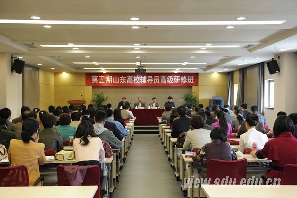 山东省委高校工委宣教处处长刘欣堂出席开班仪式,并代表省委高校工委对学员参加研修活动提出了要求。全国高校辅导员工作研究会秘书处办公室主任、教育部高校辅导员培训和研修基地(山东大学)办公室主任夏晓虹,来自山东各高校的75名学员参加开班仪式。开班仪式后,方宏建为学员作了题为《关于辅导员队伍职业化、专业化建设中的若干问题》的报告。