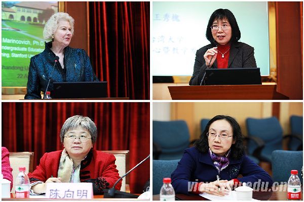 研讨会邀请了美国斯坦福大学教师发展中心Michele Marincovich主任、台湾大学师资培育中心暨教学发展中心王秀槐教授、北京大学教育学院陈向明教授、上海交通大学教学发展中心高捷主任作大会主旨发言,就教师教学发展工作的实践、探索与研究成果进行了交流。研讨会分别就以学生为中心的教学模式建设、大学教师发展中心建设的国际趋势与中国特色两个论题进行了交流研讨。全国30个国家级示范中心中的9个中心派代表参会。山东大学教学促进与教师发展中心主任张树永,学校新聘青年教师研讨班的教师以及来自省内外29所高校教师教学发展中心的70余名代表参加了研讨会。