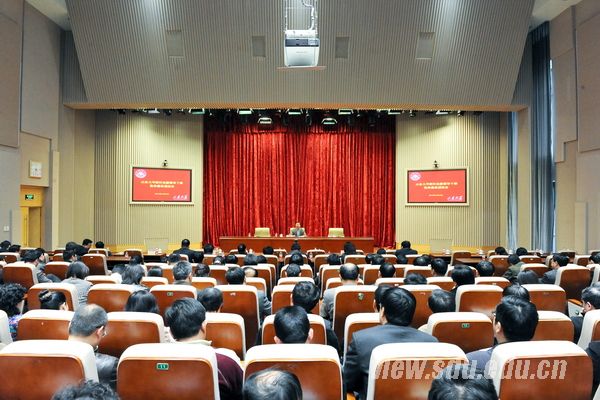 [本站讯]4月22日,山东大学新任处级领导干部集体廉政谈话会在中心校区知新楼三层报告厅召开。山东大学党委副书记、纪委书记方宏建从提高认识、警钟长鸣、秉公用权三个方面与全体参会的新提任和岗位进行调整的处级领导干部进行了集体廉政谈话。