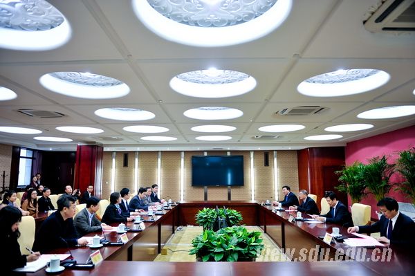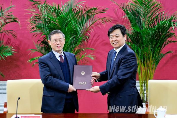 [本站讯]4月12日,山东大学在中心校区明德楼举行兼职教授聘任仪式,聘请中国社会科学院学部委员、经济学部副主任吕政教授担任山东大学人文社科一级教授,山东大学校长徐显明出席聘任仪式并向吕政教授颁发聘书。