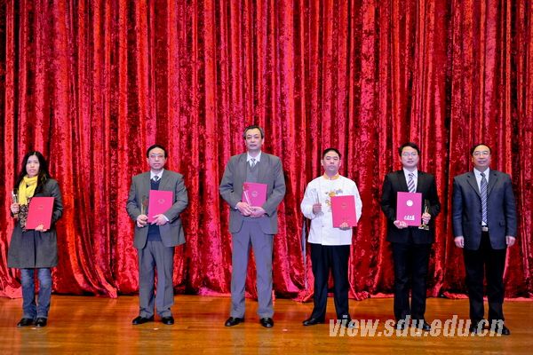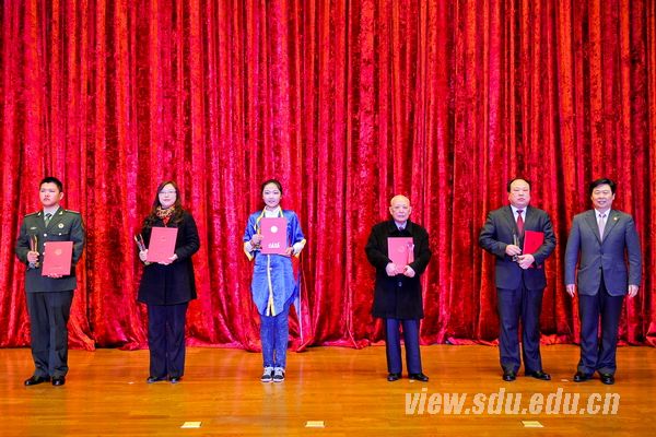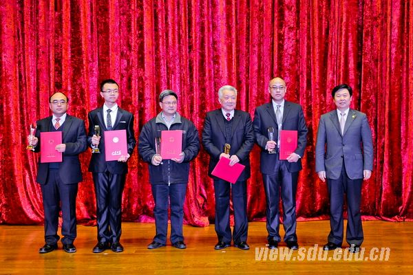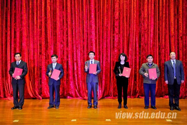 颁奖典礼由获奖者事迹短片介绍、颁发奖杯和证书、获奖嘉宾发表获奖感言、合影留念等环节组成。发表获奖感言时,获奖嘉宾纷纷表达了自己的激动、自豪和感激之情,表示这份荣誉是肯定和鼓励,更是激励和鞭策,自己将会珍惜这份荣誉,一如既往地努力工作和学习,为早日实现山大梦,把山东大学建设成为世界一流大学作出新的贡献。发言中有感谢有祝愿,有寄语有愿望,有决心有信心;带给大家的是感动,是信念,是坚定。他们的努力与付出,他们的真挚与朴实,他们心中缓缓流淌的爱与忠诚,让在场的每一个人深深为之感染。