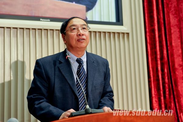 李守信在讲话中表示,过去的2012年是山东大学事业发展的关键一年,是为建设世界一流大学奠定重要基础的一年。2012年所有成绩的取得都离不开全校师生员工、全体校友的努力和奋斗,“十大新闻人物”、“爱岗敬业十大模范人物”,以及“十大杰出校友”就是这些人中的佼佼者,是榜样和中坚,值得我们去认识,去铭记和学习。他说,山东大学一直在积极构建学校独特的荣誉体系,如今这一体系正日趋完善。今天进行表彰的“十大新闻人物”和“爱岗敬业十大模范人物”就是这个荣誉体系的重要组成部分。他谈到,世界一流大学就是要有一流的教师、一流的学生、一流的校友,今天获得表彰的这些人就是山东大学的脊梁,是山东大学的心灵和窗口。人们通过看他们来评价山东大学,山东大学也通过他们来展现自己的光彩。他希望大家以此表彰大会为新的契机,带着这次大会上收获的感动和坚定,积极投入到平时的学习工作中去,带着最美好的信念和忠诚学习典型、争做先进、凝聚力量、群策群力,共同创造山东大学美好的明天。