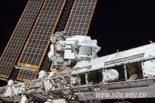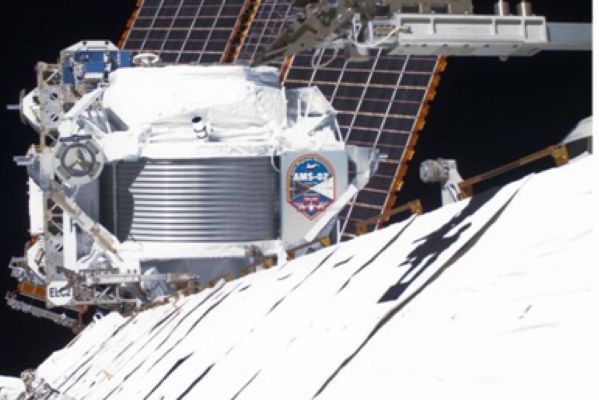 距离地表约400公里的观测点,阿尔法磁谱仪(AMS)收集穿过探测器的宇宙射线的数据